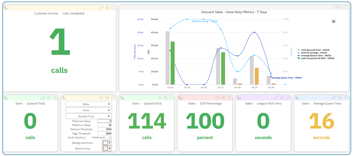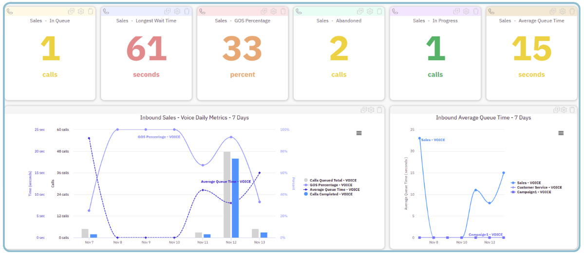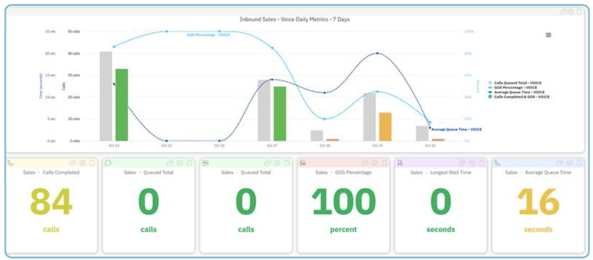 - Highlight a single metric — like SLA, wait time, or service level — and monitor it in isolation