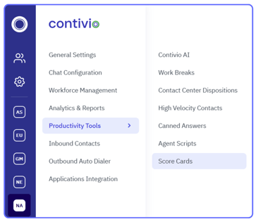 Navigate to the selected Call Center → Productivity Tools → Score Cards.