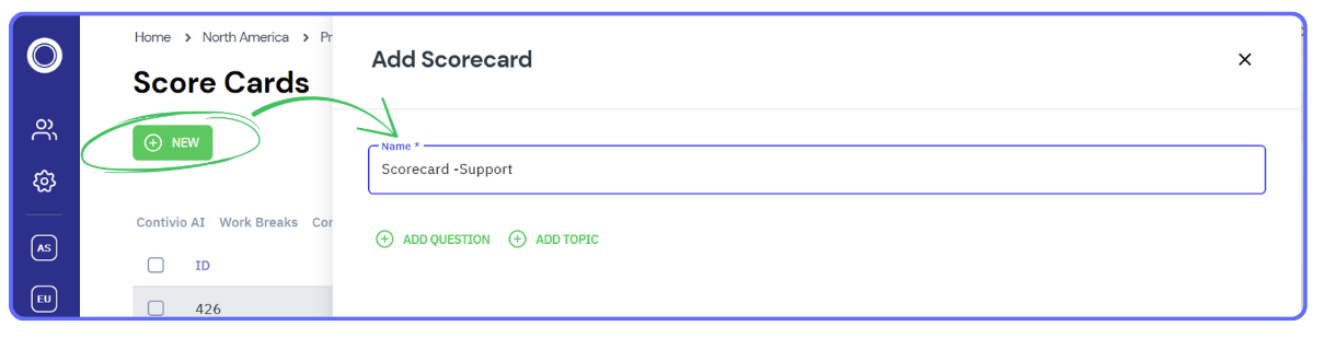 Click New and give it a clear name (e.g., Scorecard -Support).