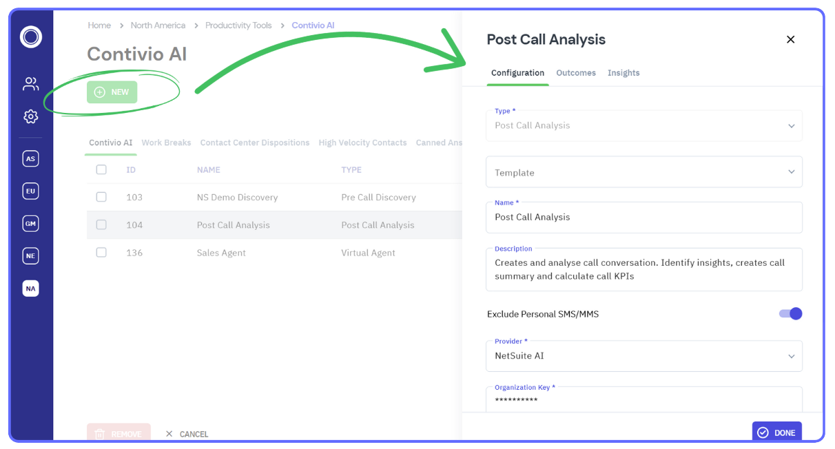 From Productivity Tools, go to Contivio AI → Profiles, click New (or edit an existing profile). Give the profile a descriptive name.