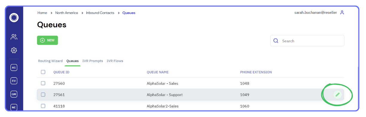 Go to the selected Contact Center → Inbound → Contacts Queues, then open each queue you want to use this profile with by clicking the pencil icon .